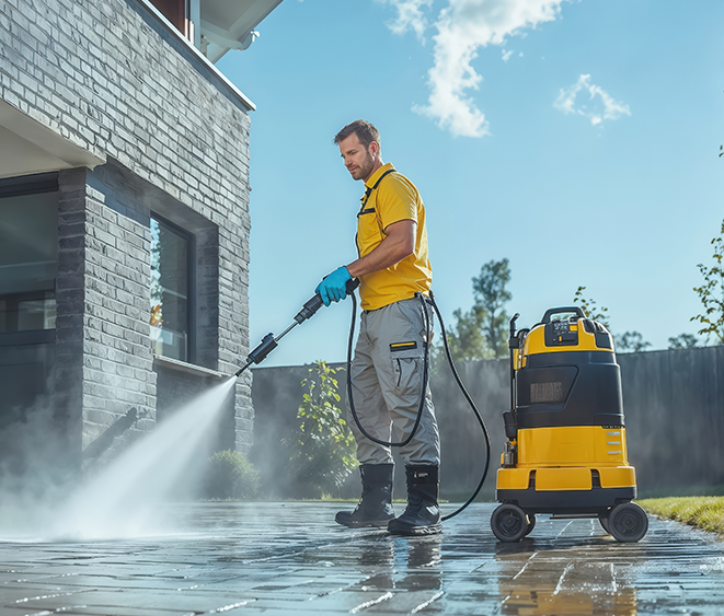 We set up the required tools, such as the pressure washer, which needs electricity and water to operate. We install a fitting to link the machine to a nearby water source if the garden is without a water supply.